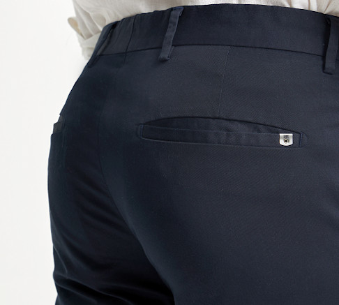 Minimal & Refined. Elevate your wardrobe with this refined chino, cut in smooth 7oz Italian stretch-cotton.