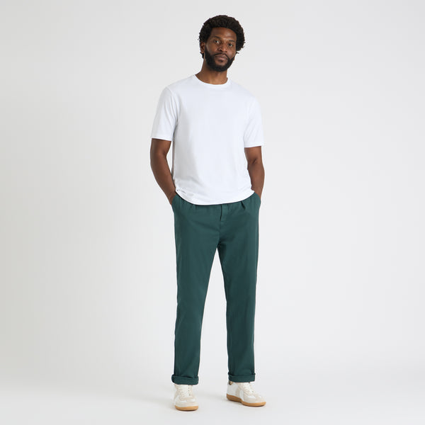 And the finishing is on point — with a pair of distinctively British forward pleats, slash hip pockets, front coin pocket, and a flap on the jets at the back. The micro-herringbone weave is shot-through with stretch, and garment-dyed for a soft feel.
